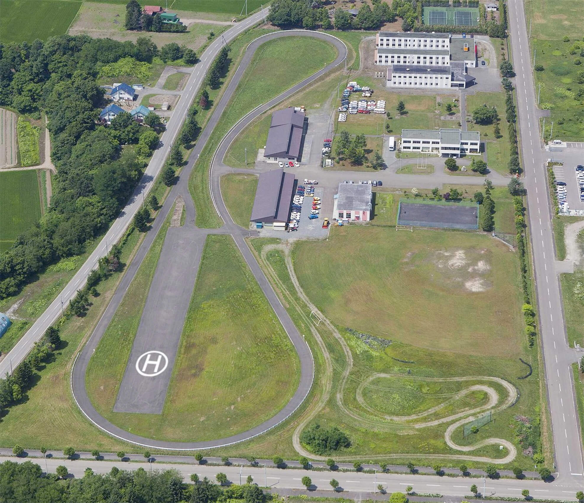 広大な敷地には本格的な高速周回コースと多目的コース、オフロードコースと総延長2.5kmの本格的テストコースを完備。単純な分解組立だけでは得られない走行感覚を実践的に学ぶことができます。また、このテストコースは入学希望者のオープンキャンパスにおいて、最新車両やスーパーカーの試乗会として使用したり、各企業様の開発テストにも使用されております。